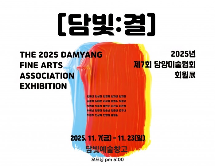 담양의 예술정신을 담은 2025 담양미술협회 회원전 ‘담빛결’이 오는 11월 7일(금) 오후 5시 개막식을 시작으로 11월 23일(일)까지 담빛예술창고에서 개최된다.