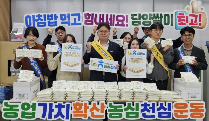 □ 농협담양군지부는 지난 11일 가래떡데이를 맞아“아침밥 먹기 및 농심천심 운동 실천 캠페인”을 함께 실시했다고 밝혔다.