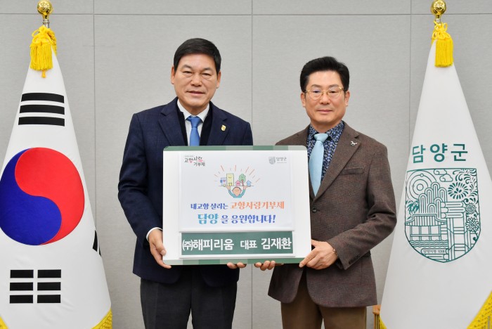 담양군은 지난 26일 ㈜해피리움 김재환 대표가 담양을 방문해 고향사랑기부금 100만 원을 전달했다고 밝혔다.