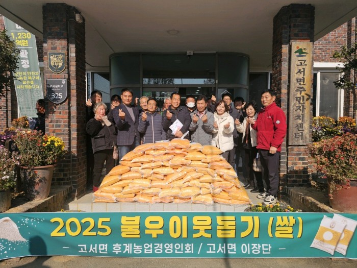 구미형 고서면장은 “힘든 경기에도 이웃을 위한 마음을 전해주셔서 감사하다”며 “가족과 함께 훈훈한 겨울을 보내시기 바란다”라고 전했다.