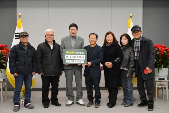 (재)담양장학회(이사장 정철원)는 지난 8일 담양군 친환경농업협회(회장 김영회)에서 지역 인재 육성을 위한 장애인장학금 1백만 원을 기탁했다고 밝혔다.