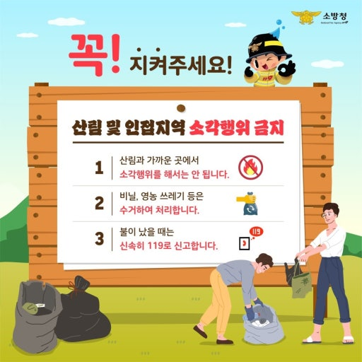겨울철에는 낮은 습도와 강한 바람으로 인해 논·밭두렁, 영농 부산물 소각 과정에서 발생한 작은 불씨가 산림과 주택으로 빠르게 확산될 수 있어 각별한 주의가 필요하다. 실제로 매년 이 시기 농경지 소각 및 들불로 인한 산불·주택화재가 반복적으로 발생하고 있다.