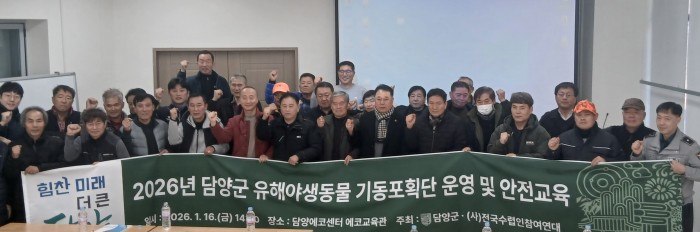 담양군 (군수 정철원)은 지난 16일 담양에코센터 에코교육관에서 2026년 유해야생동물 기동포획단 운영을 위한 안전교육 실시했다.