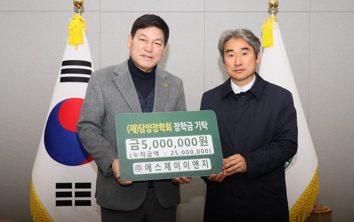 ㈜에스제이이엔지(대표이사 조승준)가 (재)담양장학회에 장애인 장학금 500만 원을 기탁하며 지역인재 사랑을 전했다.