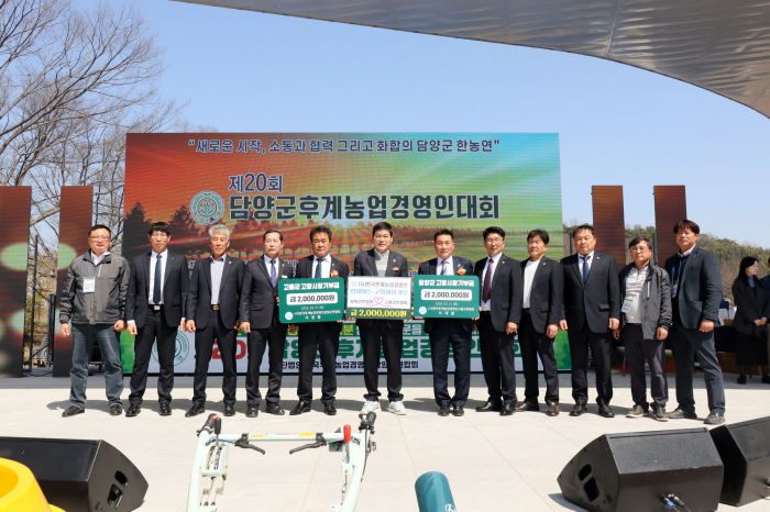(사)한국후계농업경영인 담양군연합회(회장 서정범)가 지난 21일 열린 ‘제20회 담양군 후계농업경영인대회’에서 고흥군연합회(회장 이재철), 함양군연합회(회장 염봉섭)와 고향사랑기부금 상호 기탁식을 진행했다.
